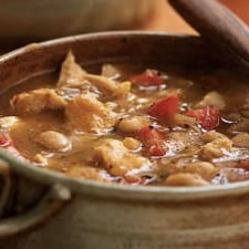 Heat oil in a large Dutch oven over medium-high heat. Add onion; sauté 10 minutes or until tender and golden. Add chili powder, garlic, and cumin; sauté for 2 minutes. Add oregano and beans. Add broth; bring to a simmer. Cook 20 minutes. Mash about 1 cup of bean mixture into a paste. Return bean mixture to pan. Add turkey, and cook 5 minutes or until thoroughly heated. Remove from heat. Add diced tomato, chopped cilantro, lime juice, salt, and pepper, stirring well. Garnish with lime wedges, if desired. Per Serving: 342 Calories; 3g Fat (6.9% calories from fat); 1g Saturated Fat; 39g Protein; 41g Carbohydrate; 9g Dietary Fiber; 58mg Cholesterol; 315mg Sodium. Exchanges: 2 1/2 Grain(Starch); 4 1/2 Lean Meat; 1 Vegetable; 0 Fruit; 1/2 Fat. Low Fat Recipes Furnished by LowFatLifestyle.com© - Copyright 2014 |