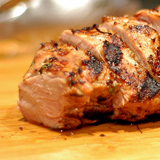 Preheat oven to 425°. Place the preserves in a small saucepan over medium-low heat, and cook 10 minutes or until melted. Keep warm over low heat. Combine salt, oregano, garlic powder, and pepper; rub evenly over pork. Place pork on a rack coated with cooking spray; place rack in a shallow roasting pan. Bake at 425° for 30 minutes. Brush 1/4 cup preserves evenly over pork. Bake an additional 10 minutes. Brush remaining preserves evenly over pork. Bake an additional 10 minutes or until thermometer registers 155° (slightly pink). Let stand 10 minutes before slicing. Per Serving (per 5.25 ounce serving or 1/8 of roast): 254 Calories; 6g Fat (21.1% calories from fat); 36g Protein; 13g Carbohydrate; trace Dietary Fiber; 111mg Cholesterol; 328mg Sodium. Exchanges: 0 Grain(Starch); 5 Lean Meat; 0 Fat; 1 Other Carbohydrates. Low Fat Recipes Furnished by LowFatLifestyle.com© - Copyright 2001 - 2013 |
