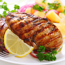 Transfer chicken to a platter; keep warm. Reduce heat to medium-low; add vinegar and honey to pan. Simmer 1 minute or until glaze thickens; stir constantly. Pour glaze over chicken. Per Serving: 170 Calories; 3g Fat (13.9% calories from fat); 1g Saturated Fat; 26g Protein; 10g Carbohydrate; trace Dietary Fiber; 66mg Cholesterol; 341mg Sodium. Exchanges: 0 Grain(Starch); 3 1/2 Lean Meat; 0 Fruit; 0 Fat; 1/2 Other Carbohydrates. Low Fat Recipes Furnished by LowFatLifestyle.com© - Copyright 2001 - 2014 |