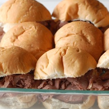 Brown flour in a skillet until a light tan color (this cooks out the raw flour taste). Remove and set aside. Clean skillet and spray with cooking oil spray and heat over moderate heat. Add shallots and saute 2 minutes. Add flour to 1/4 cup consomme and set aside. Whisk in sherry and consomme to sauteed shallots. Bring sauce to a bubble and whisk in flour consomme mixture and allow to simmer over low heat for several minutes. To assemble, using a pair of kitchen tongs, dip meat into loose au jus sauce and pile into rolls and place on a platter. Set 8 ramekins or cups with extra dipping sauce along side the sandwiches. Per Serving (per slider): 194 Calories; 5g Fat (21.6% calories from fat); 2g Saturated Fat; 19g Protein; 19g Carbohydrate; 1g Dietary Fiber; 41mg Cholesterol; 897mg Sodium. Exchanges: 1 Grain(Starch); 1/2 Lean Meat; 0 Vegetable; 1/2 Fat. * COOKS NOTE: We used Boar's Head Londonport® Top Round Seasoned Roast Beef Low Fat Recipes Furnished by LowFatLifestyle.com© - Copyright 2013 |