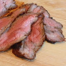 Pierce steak gently on both sides. Combine steak and next 6 ingredients (through pepper) in a shallow dish; turn to coat. Marinate at room temperature 20 minutes, turning occasionally. Remove steak from marinade, reserving marinade. Place steak on a broiler pan coated with cooking spray. Pour marinade into a small skillet; bring to a boil, stirring well. Cook over medium-high heat 3 minutes or until thick and syrupy. Brush steak with half of glaze; broil 5 minutes. Turn steak over, and brush with remaining glaze; broil 5 minutes or until desired degree of doneness. Place steak on a cutting board; let stand 5 minutes. Cut steak diagonally across grain into thin slices. Per Serving: 265 Calories; 13g Fat (46.6% calories from fat); 5g Saturated Fat; 23g Protein; 11g Carbohydrate; trace Dietary Fiber; 58mg Cholesterol; 566mg Sodium. Exchanges: 0 Grain(Starch); 3 1/2 Lean Meat; 0 Vegetable; 1 Fat; 1/2 Other Carbohydrates.
